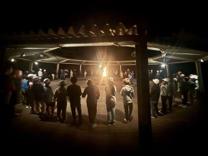 「進化じゃんけん」「マイムマイム」…子どもたちの笑い声や盛り上がった声が営火場こだましています。