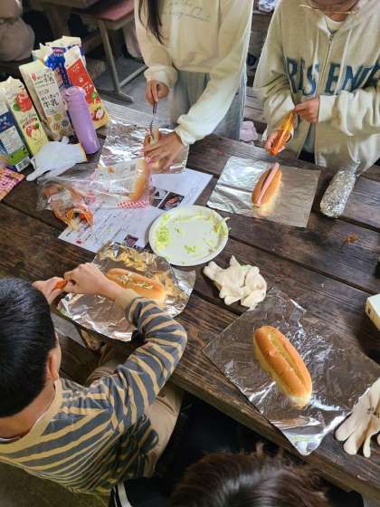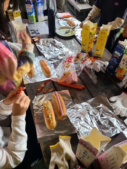 子どもたちは朝一番、荷物整理をして、朝食づくりをしています。