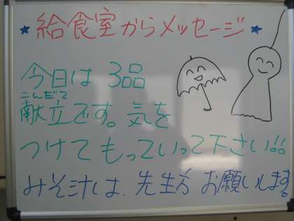 6月14日(木)−今日は暑いですね。 公開日 2012/06/14 更新日 2012/06/14 今日の給食 今日は暑いですね。 子どもたちは,朝から順番にプール学習をしています。 気持ちよさそうだなぁ。と少々うらやましく思いますが, 風が吹くとまだ寒そうにしている場面もありました。