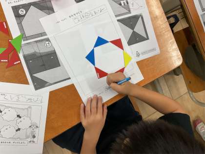 現在、1年生はお宝をゲットするために形を作るミッションに取り組んでいます。