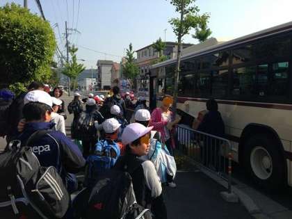 8:35に,5年生125名,「花背山の家」に向かって元気に出発しました。