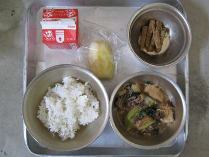 献立内容 ごはん,牛乳,すきやき風煮,たたきごぼう,りんご