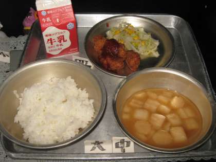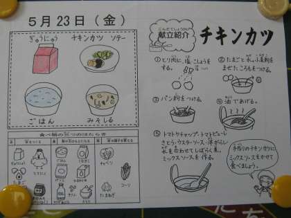 今日の給食は,チキンカツでした。遠足へ行っているみんなは,お弁当を食べていることでしょう。楽しんでいるでしょうか?