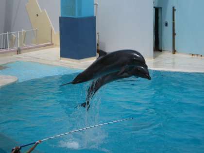 須磨についた一行は,須磨海水浴場に設けられた「須磨ドルフィンコースト」でイルカや海洋生物,海の環境問題について学習をしました。続いてイルカショーも見ましたね。
