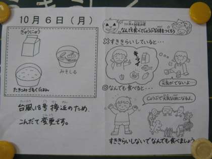 「暴風警報発令時について」は,保存版として,何度かプリントを配布していたのですが,いざ発令となるとなかなか見つからなかったようで問い合わせも多く,確認に時間がかかってしまいました。