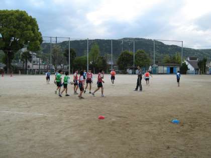 4月23日(金)放課後の運動場の様子です。タグラグビー部が練習をしていました。今日から4・5年生がみさきの家の野外活動に出かけているので,学校全体がいつもより静かな感じがしました。