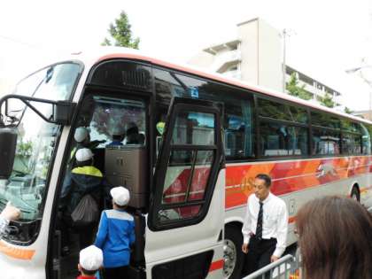 元気良く4年生全員(95名)の子どもたちが「みさきの家」に向けて出発しました。