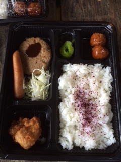 お昼は、ハンバーグ弁当です。外で食べるごはんは、おいしいようでしっかりと食べることができました。