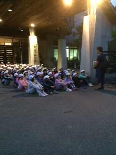 今からキャンプファイヤーをします。雨も上がり、外でできます。嬉しいゲストも来てくれています。