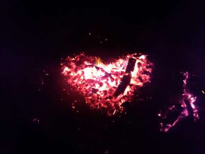 夕方までの雨がすっかりあがり、キャンプファイヤーができました。