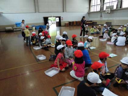 4月28日に第一回目のたんぽぽ集会がありました。1年生と2年生の交流学習です。これから学校探検や,秋の遠足で一緒に学習していく予定です。今日ははじめましての会ということで,自己紹介や手遊び,そしてプレゼントを渡しました。1年生をリードする2年生。恥ずかしさと誇らしさの混ざったいい顔をしていました。これからよろしくね,1年生!
