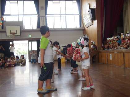 2年生は,「ハッピージャムジャム」のダンスでお迎えし,昨年育てたあさがおの種をプレゼントしました。