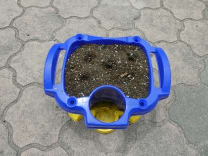 自分の植木鉢にていねいに土を入れ,指でそぉーっと穴をあけて,ひとつぶずつ種をいれました。そのあと水をあげました。