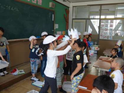 1年生も楽しく学校探検ができ,プレゼントの冠ももらって喜んでくれていたようです。