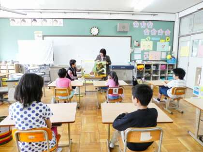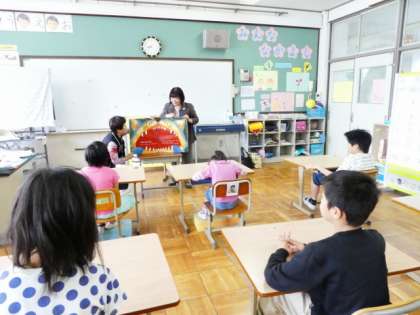 くすくすさんのおふたりが,教室に読み聞かせにきてくださいました。
