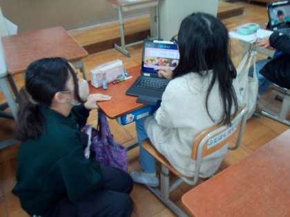 栄養教諭の北村先生に向けて、郷土料理のおすすめランチセットの紹介ビデオをとりました。どうすればよさが伝わるのかを考え、最後までペアでやり取りをしていました。
