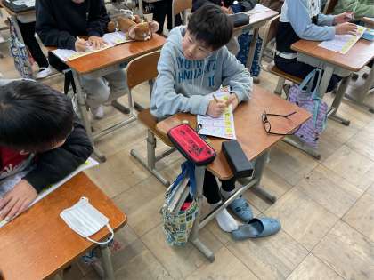 新しい漢字のドリルで新出漢字の勉強をしました。バランスに気を付けて書くことができました。
