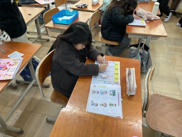 漢字の学習をしました!書き順や字のバランスに苦戦していましたね。いい姿勢で書くとキレイな字が書けました!