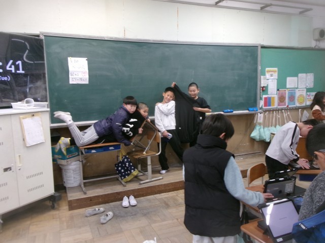 うではこんな感じ?顔ってどんなんやろ?と話し合って写真を撮っていました。
