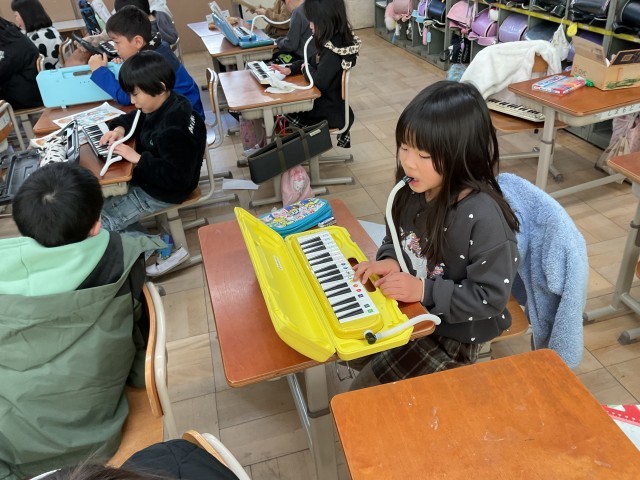 今日も鍵盤ハーモニカの練習をしました。トゥトゥトゥとタンギングを使って吹くと、上手く演奏することができましたね!