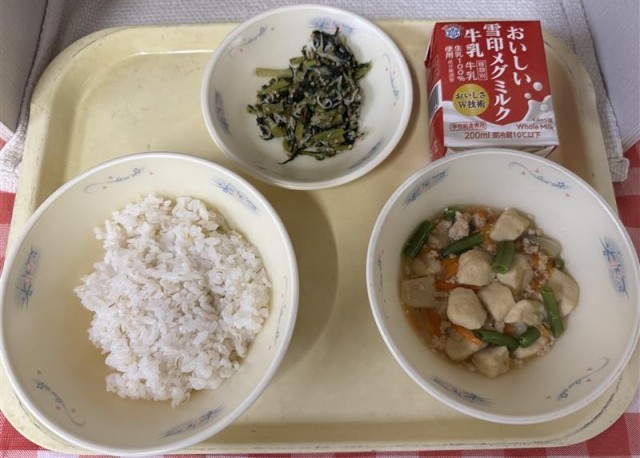 鶏ひき肉や玉ねぎ、にんじん、三度豆を使用して作りました。