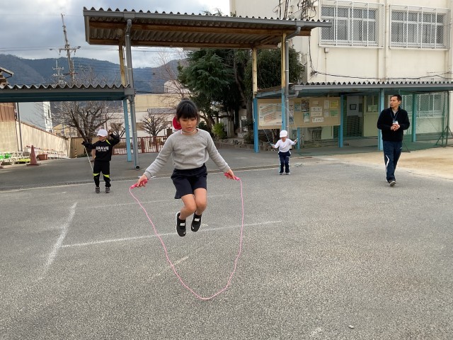 今日も縄跳びです!二重跳びやクロス跳びなど、やったことのない技にもチャレンジします!大縄跳びのように、友達と一緒に飛んでいるグループもありました。