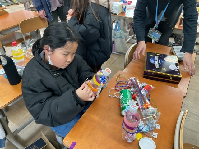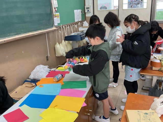 図工で楽器を作っています!今日は、材料を組み合わせたり、飾り付けをしたりしました。いろいろなアイディアがあって面白いです!