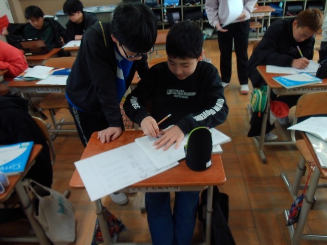 テストに向けて復習をしました。教え合う姿が素敵でした!