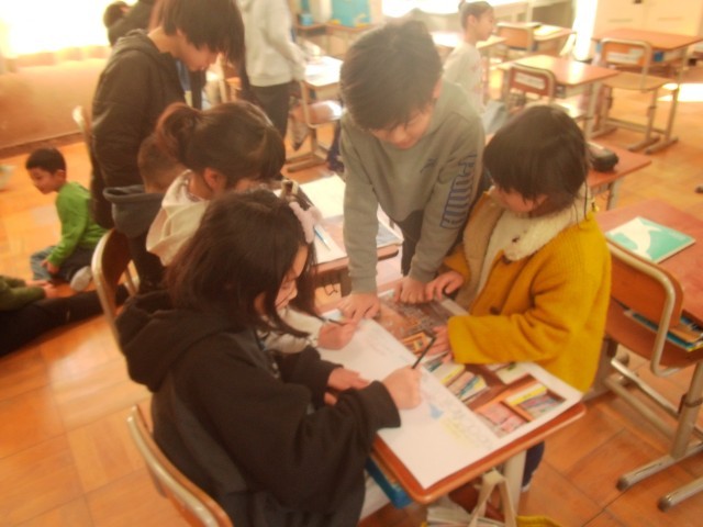 2月4日 5年生 総合的な学習の時間 公開日 2026/02/05 更新日 2026/02/04 5年生 今日は、1年生との合同準備!写真を撮ったり、セリフを考えたりと役割分担をしながら協力して進めています。