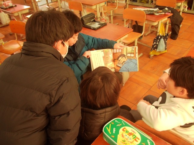 休み時間に読み聞かせの練習をしていました。