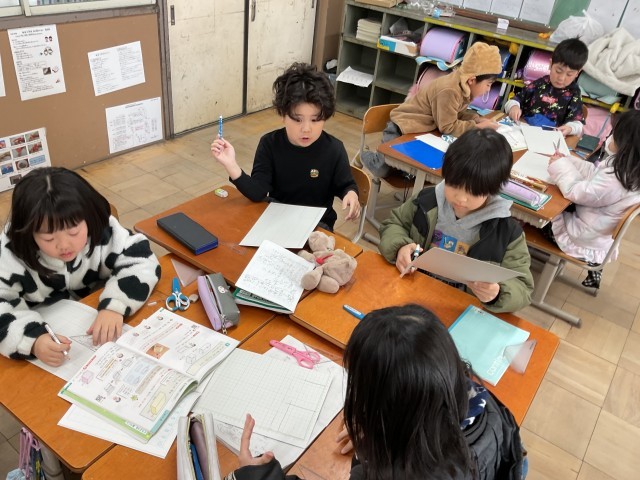 算数では、箱を、自分たちで作りました。面の数や辺の長さなどを考えて作りました。