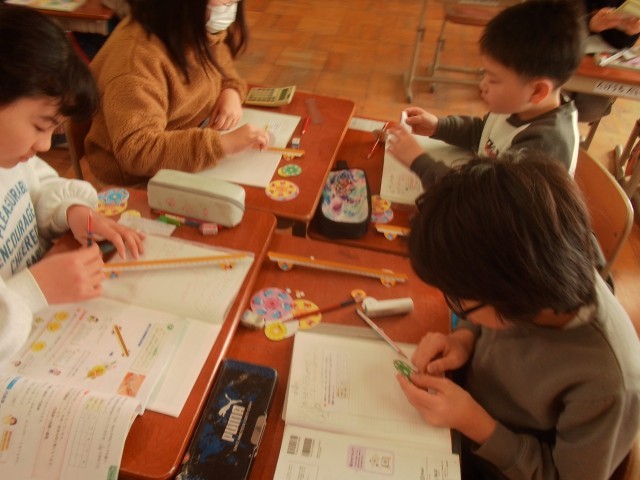 2月6日 5年生 算数科「円と正多角形」 公開日 2026/02/06 更新日 2026/02/06 5年生 円周は直径の何倍になるかをくわしく調べました。円周率がどのようなものか考えることができました。