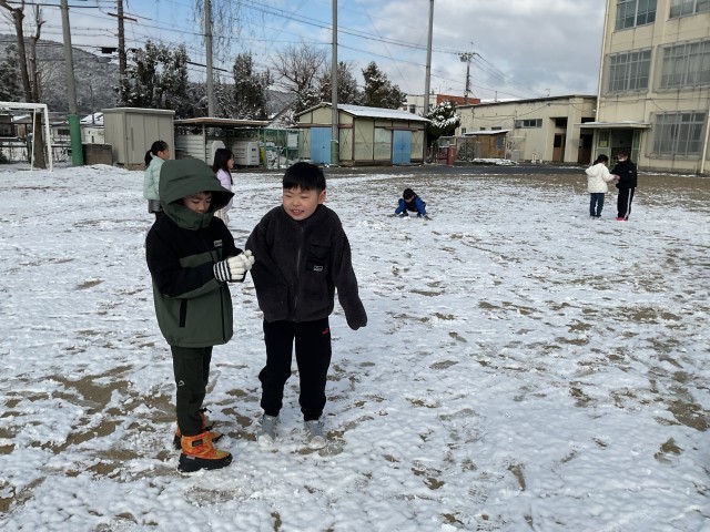 雪がたくさん積もったので、雪遊びをしました!たまにしか積もらないからテンションアップですね!