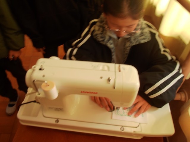 手順を確かめながら直線ぬいに挑戦しました。