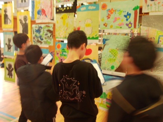 校内作品展の鑑賞をしました。各学年の作品のよさをたくさん見つけることができました。