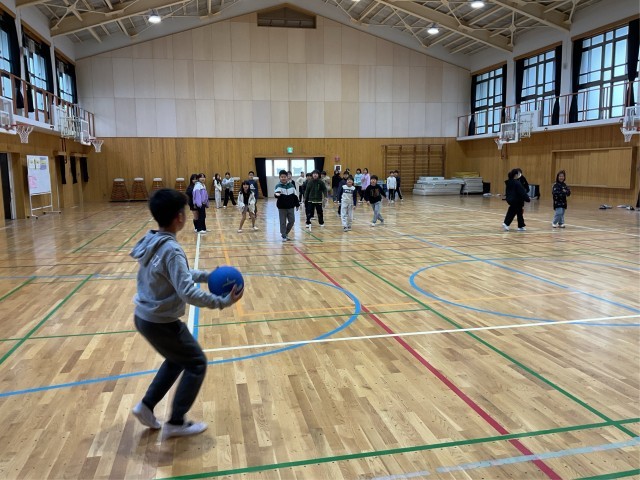 今回のすくすくハッピータイムは、体育館でドッジボールでした。朝は少し肌寒かったですが、体を動かして温まりました。