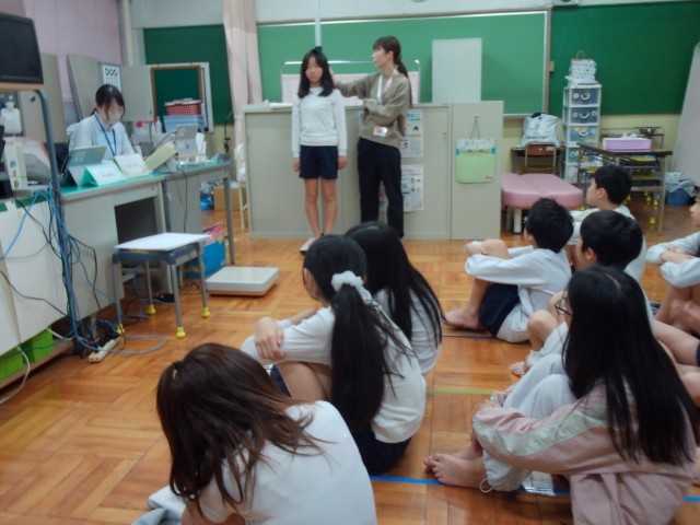 今年度初めての身体計測。新しい養護の先生の紹介や