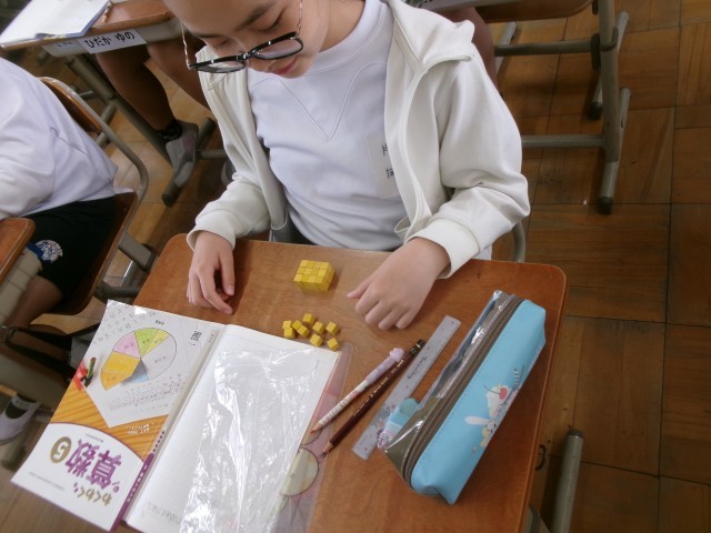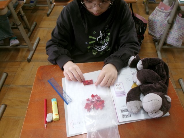 新しい単位を学習し、16㎤の直方体を色々と作りました。