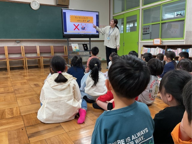 初めて図書館に行きました。図書館でのマナーや借り方のルールを教えてもらいました。