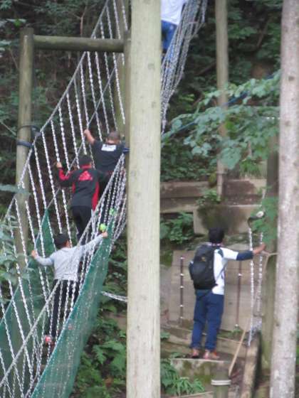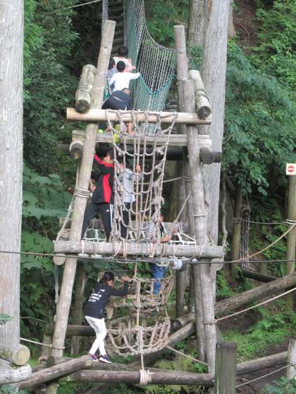 待ちに待った「冒険の森」です。急な角度や高さもあり怖さもあるのですが,興味・関心・征服意欲は,勝っていました。