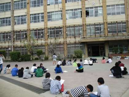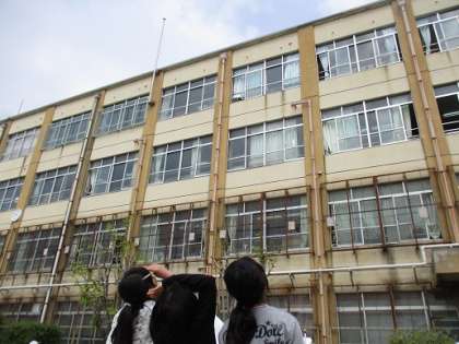 写真は午前中の観察の様子です。午後にも観察をして,1日の雲の様子のちがいを調べました。
