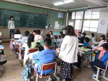 5年生は,理科「天気の変化」の学習で,運動場に出て雲の様子の観察をしました。その後,教室に戻って気づいたことの交流をしました。