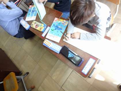 算数科では5の分け方をノートに書きました。ノートの書き方や下敷きを使うことを楽しみながら学習していました。