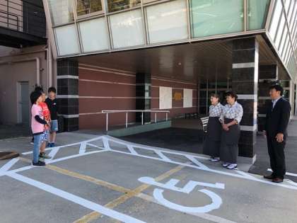 旅館美舟の退館式の様子です。代表の児童が,気持ちよく過ごせるようにお世話をしてくださった旅館の方にお礼の言葉を言いました。