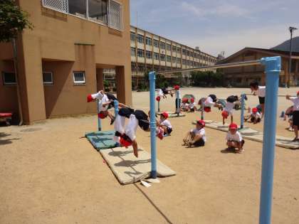 5月27日(月)は体育で「てつぼうあそび」をしました。自分たちでマットを用意しました。とても暑かったですが,水分補給をしながら,てつぼうあそびをしました。これから少しずつ技に挑戦していきます。どんな技ができるようになるのか楽しみです♪