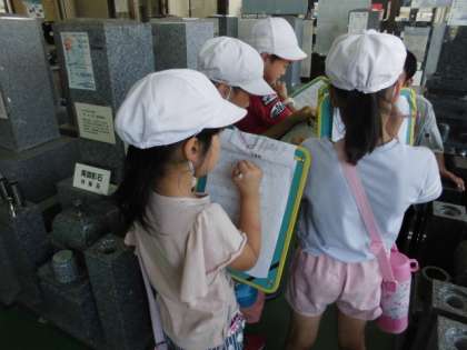 2年生は生活科の町探検に出かけました。お忙しい中温かく迎えてくださったお店の方に感謝の気持ちでいっぱいです。店内を見させていただいたり,インタビューをさせてもらったりしました。素敵な地域に恵まれているとさらに実感することができました。暑い中,保護者の方に見守りをしていただきました。本当にありがとうございました。帰校してから,見学したお店の凄さを友だちにどんどん伝え合う姿が印象的でした。