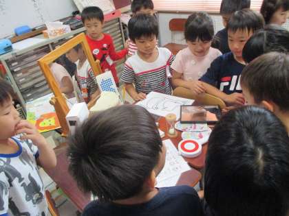 そのあと、教室にある学習道具を見せてもらいました。「おもしろそうな道具だな。」「どうやって使うのかな。」と、興味津々でした。