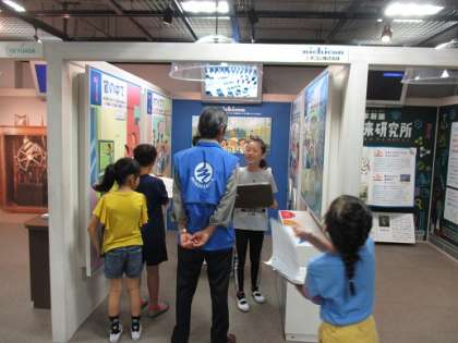 ブースには企業の創業者や製品の紹介や体験コーナーもあります。「モノレンジャー」というボランティアの方々から説明を受けることもできました。