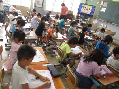 1年生はワークブックを使って,学習したひらがなを書く練習をしていました。背筋を伸ばして正しい姿勢で一字一字丁寧にを書くことを心がけていました。
