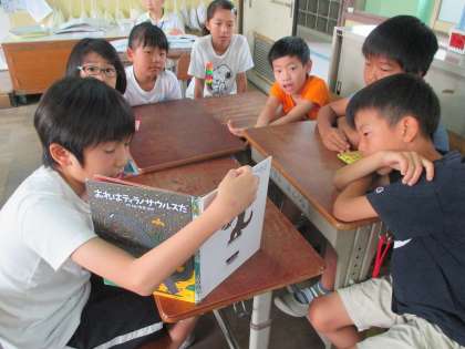 読書週間の取組として今日は朝の時間にたてわりグループで集まって読み聞かせをしています。